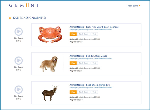 Once assignments have been assigned by the language assessment, they will then be available to download on the app and be played through the Student account.